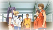 朋也、陽平和杏三人與籃球部的一年級生進行比賽,他們在上半場領先11分。籃球部在下半場時換上了主力部員,他們知道朋也的右手不能抬過肩,開始針對著他的弱點來追回分數。當分數被籃球部反超前時,朋也嘗試投球但被撞倒。朋也認為自己根本沒可以勝利時,被渚的喊聲喚醒。朋也在倒地前用力投球,結果成功進球,並以領先1分的成績獲得勝利。芽衣在比賽過後回家,並向朋也、陽平和渚道別。